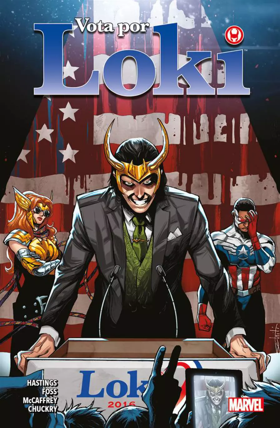 ¿Quién mejor para dirigir el gobierno que el dios de las mentiras? Loki es muchas cosas: dios, embaucador, hermano, hijo, villano, incluso héroe. Ahora quiere agregar un título más a la lista: ¡Presidente de los Estados Unidos! Así es, ¡el Dios de las Travesuras quiere ser el gobernante del mundo libre! ¿Pero es esto solo otra treta? Un hecho es cierto: con la sonrisa ganadora y la retórica de Loki en la campaña electoral, ¡esta elección se volvió mucho más interesante! Pronto tendrá al pueblo estadounidense comiendo de la palma de su mano, pero ¿puede el futuro presidente Laufeyson influir en los medios de comunicación? ¿Y cuál será su respuesta cuando los héroes de la tierra lancen sus campañas de ataque? Una crisis en Latveria le ofrece a Loki la oportunidad de demostrar su política exterior... pero seguramente no causaría una catástrofe nacional solo por un poco de buena prensa. ¿O sí?